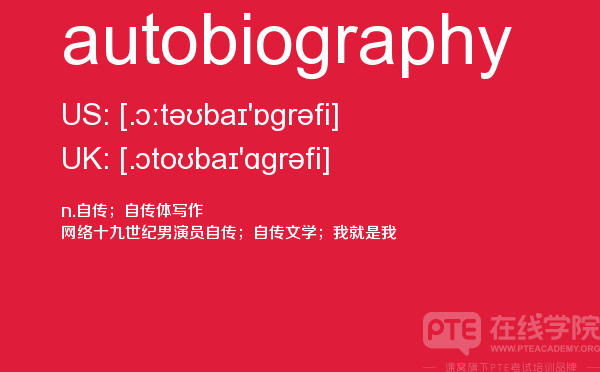 以上就是今天分享的PTE考试相关内容了,如果还想获得更多PTE考位以及PTE哪里考,或者想要了解更多的PTE内容或者PTE培训时间,都可以关注我们的PTE在线学院,在线联系我们,我们也会继续为大家带来更多干货!下面就跟小编一起来了解一下autobiography 吧!